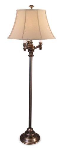 The Detailed Description of Lighting Enterprises F-1400/1405 French Bronze Finish Floor Lamp with Beige Shantung Fabric Sewn ShadeFeatures