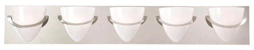 5Light BATHBAR, CHROME-Polished Chrome or Nickel frame, Opal Silk glass.
