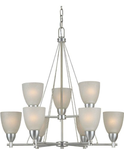 Forte Lighting 2368-09-55 Transitional 9-Light Chandelier features a Brushed Nickel finish complemented by White Linen glass in a clean, contemporary design that will enhance any decor theme with style and grace for many years to come. 2368-09-55 is 29-Inch in diameter by 28.5-Inch high, and is supplied with 3-Feet of chain and 8-Feet of wire. 2368-09-55 comes one per package, and requires nine 100-Watt medium base incandescent but-Pound, not included, dimmable using a standard incandescent dimmer. Since the company was founded in 1990, Forte Lighting has evolved to one of the leaders in the decorative lighting industry. Forte Lighting is located in southern California's "Heart of the Inland Empire." Our state of the art 172,000-Square Feet corporate headquarters and distribution center located in Fontana California provides easy accessibility for shipping and receiving of Forte product. Forte Lighting's product range has gone through a period of remarkable change, with continuous style developments. Forte Lighting's product selection is an inspiring combination of design, style and fashion, with the ability to adapt change to customer needs. At the heart of our product philosophy is our firm commitment to product engineering, and the production of beautiful lighting that combines style elegance and functionality to luxury. While factory modernization is part of this commitment, we will not lose sight our traditional values. Our customers are those who seek out and demand excellence. Fortes commitment to customer satisfaction remains our top priority.