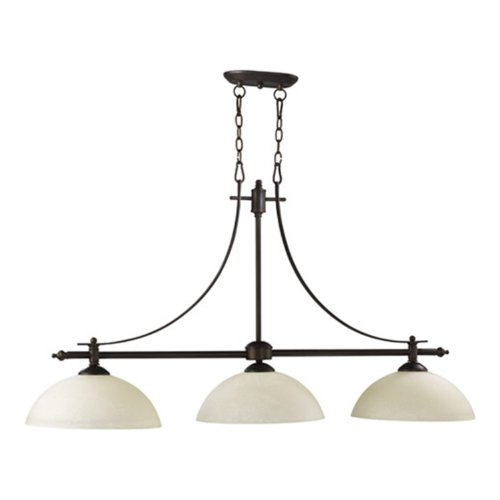 The Detailed Description of Quorum International 6577-3-86 Aspen Collection 3-Light Island Fixtures, Oiled Bronze Finish with Linen Glass ShadesFeatures